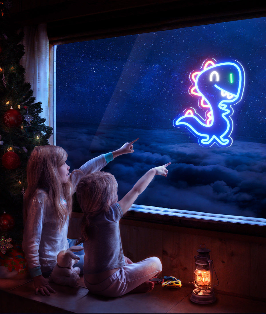 Ervaar elegantie en functionaliteit met onze Blauw neon dinosaurus nachtlampje voor muur. Ontworpen om een rustgevende sfeer te creëren en je huis zacht te verlichten, combineert het stijlvol design met praktisch gebruiksgemak.