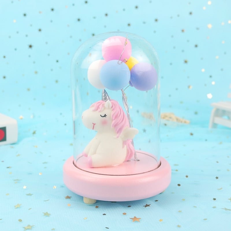 Eenhoorn nachtlampje met ballonnen in stolp