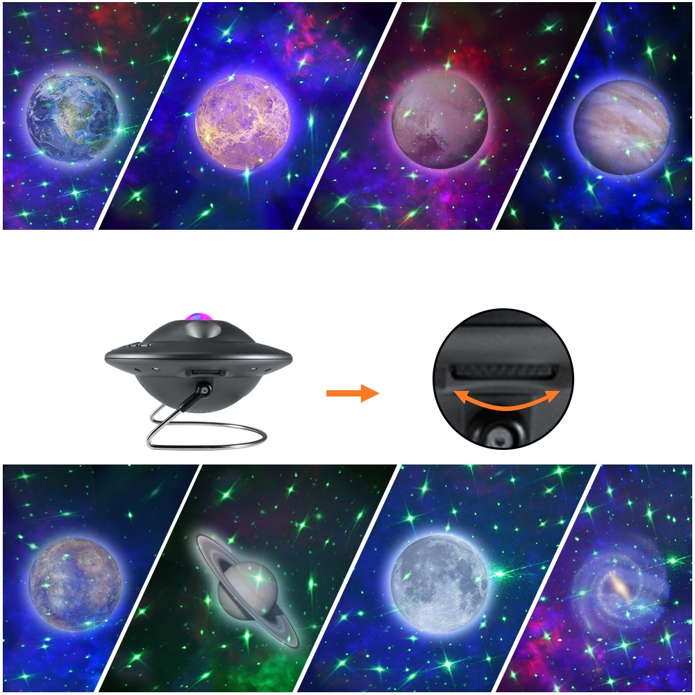 - Verbluffende projectie van sterren en planeten, waaronder Saturnus, Aarde, Venus, Mercurius en de Maan.