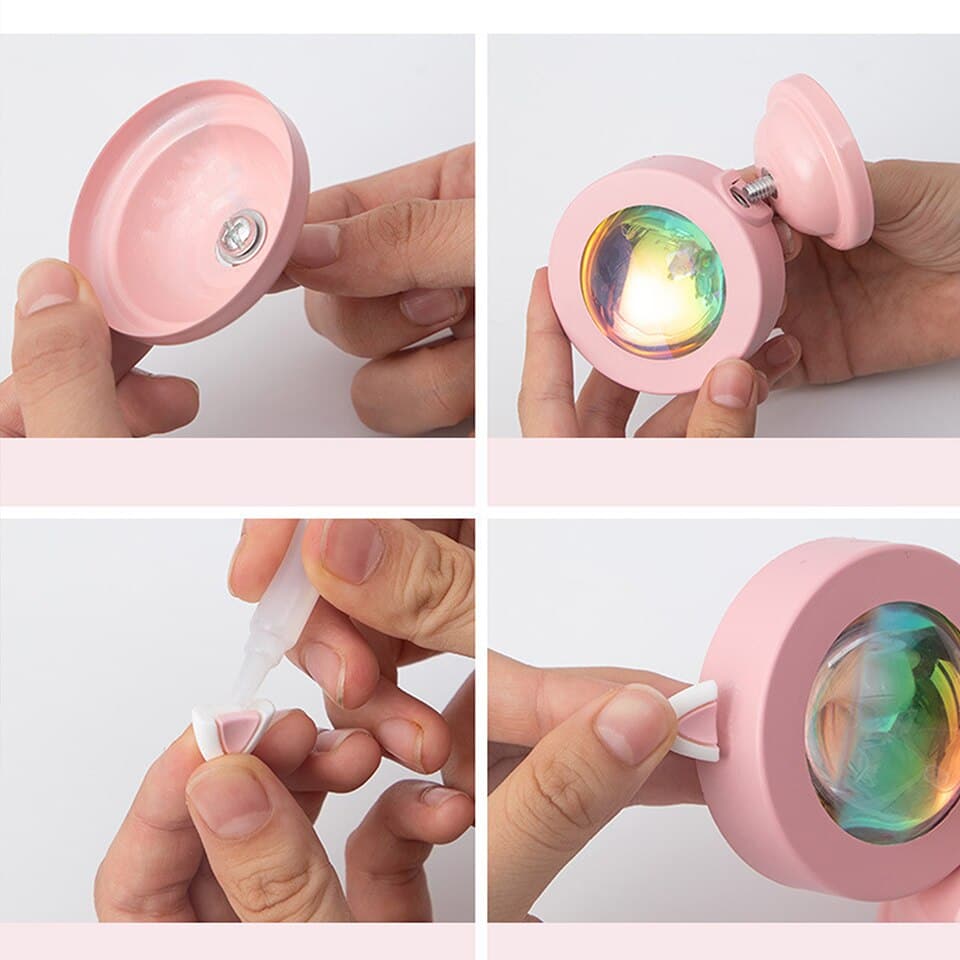 Deze lamp is ontworpen om meer te doen dan alleen licht geven. Hij creëert een ervaring. Stel je voor dat je elke dag wakker wordt met de warme gloed van een zonsopgang, of dat je de stress van de dag laat wegsmelten met de serene kleuren van een zonsondergang die door je kamer danst. De lamp biedt een scala aan kleuren en projecties, van levendige regenbogen tot kalmerende monochrome tinten, zodat je de perfecte ambiance kunt creëren voor elke gelegenheid. Zijn schattige design, met subtiele oortjes, voegt een speels element toe dat zeker een glimlach op je gezicht zal toveren.