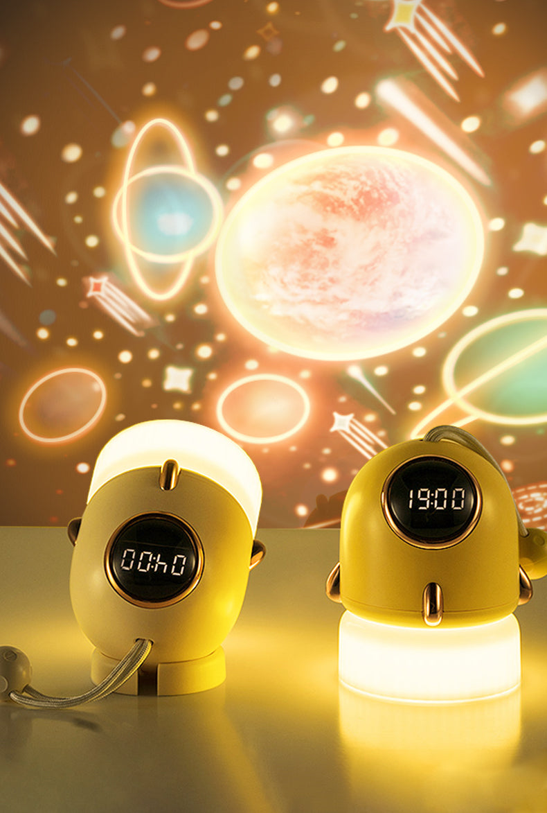 Ben je op zoek naar de perfecte aanvulling voor de kinderkamer die zowel rustgevend als functioneel is? Ontdek dan ons Nachtlampje sterrenhemel projector met wekker! Dit unieke apparaat combineert een betoverende sterrenhemelprojectie met een handige digitale wekker, ideaal om je kind te helpen ontspannen voor het slapengaan en zachtjes wakker te worden. De vrolijke gele kleur en het schattige design maken het een favoriet bij zowel ouders als kinderen. Geef de kinderkamer een magische sfeer en een vleugje functionaliteit met dit veelzijdige nachtlampje.