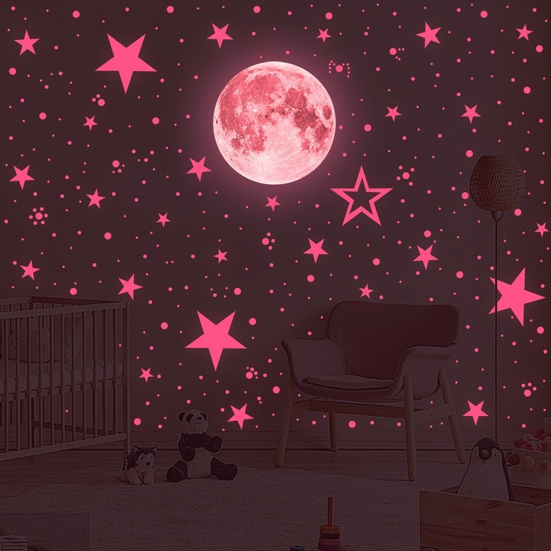 Transformeer je kamer met onze Roze lichtgevende muurstickers maan sterren