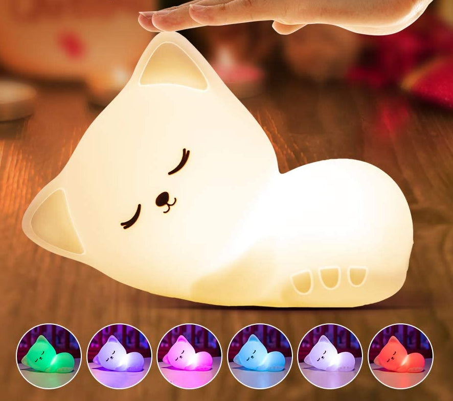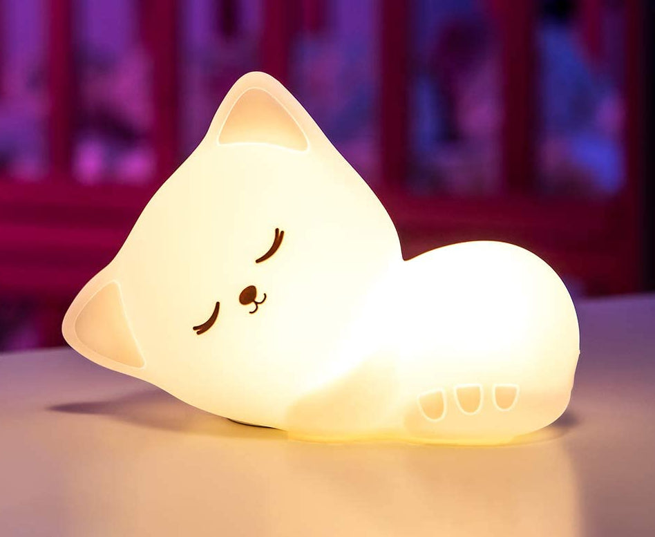 Maak de kinderkamer compleet met dit Siliconen kat nachtlampje!