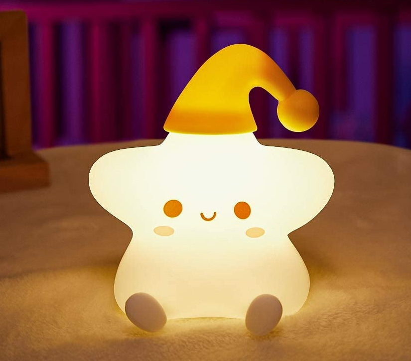Laat de droomwereld van je kind oplichten met ons schattige ster nachtlampje! Dit zachte en knuffelbare lampje is de perfecte metgezel voor elk kind dat moeite heeft met in slaap vallen of gewoon een gezellige sfeer wil creëren. Stel je voor hoe de kleine oogjes van je kind stralen wanneer ze dit lieve sterretje zien, compleet met een slaapmutsje en een vriendelijk gezichtje. Het is meer dan alleen een lampje; het is een geruststellend vriendje dat waakt over zoete dromen. Dankzij de mogelijkheid om te wisselen tussen 7 verschillende kleuren, kan je kind elke avond een nieuwe magische sfeer ontdekken, precies zoals ze het zelf willen.